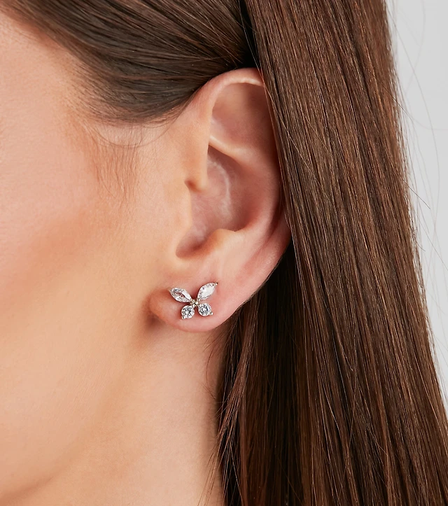 Sterling Silver Cubic Zirconia Flower Stud Earrings
