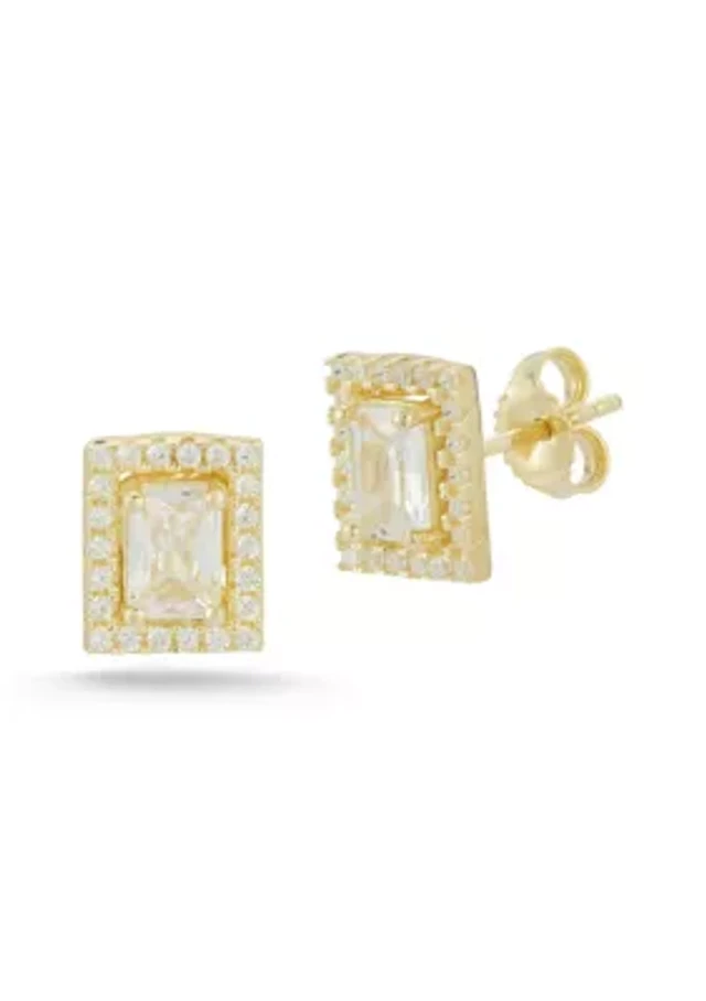 Sterling Silver CZ Rectangle Halo Stud Earrings