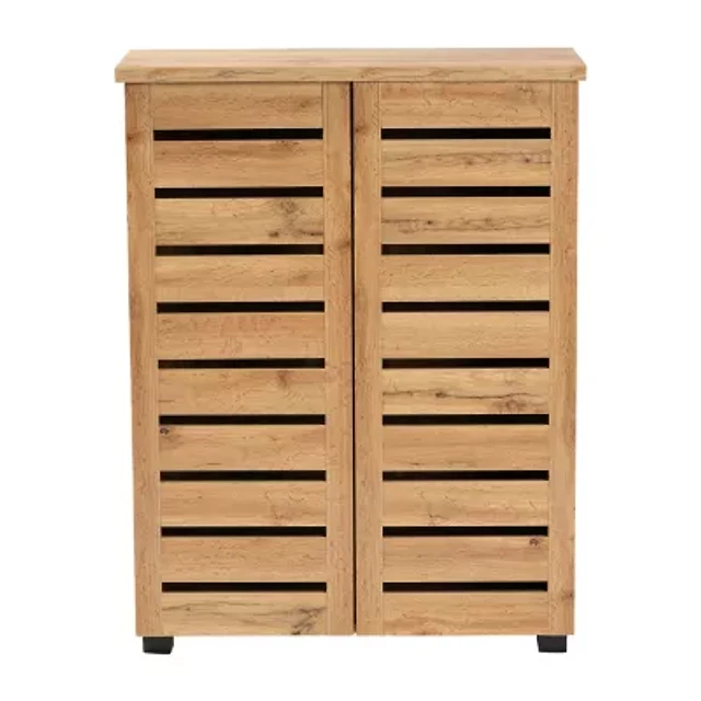 Walker Edison 32" Solid White & Reclaimed Wood Two-Tone Sliding Slat Door Accent Cabinet