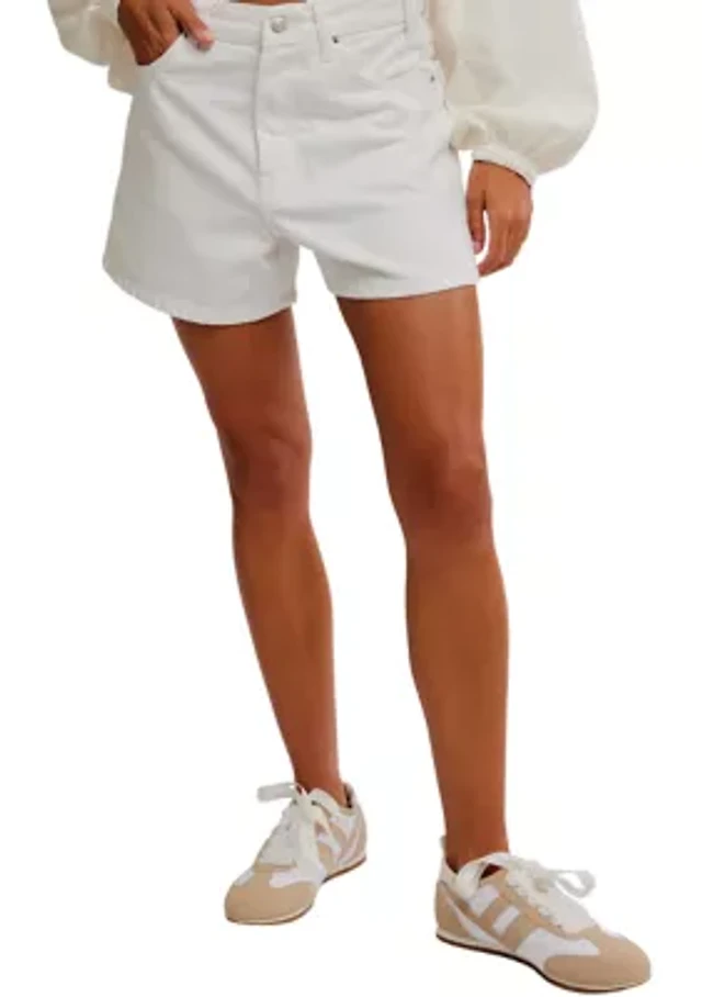 Mid Rise Denim Roll Shorts White