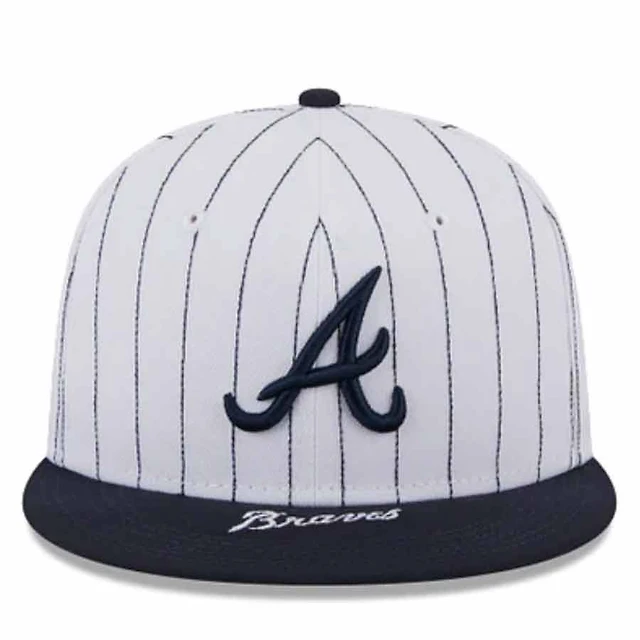 Atlanta Braves Pin Stripe Navy On Deck Gray UV New Era 59FIFTY Fitted Hat