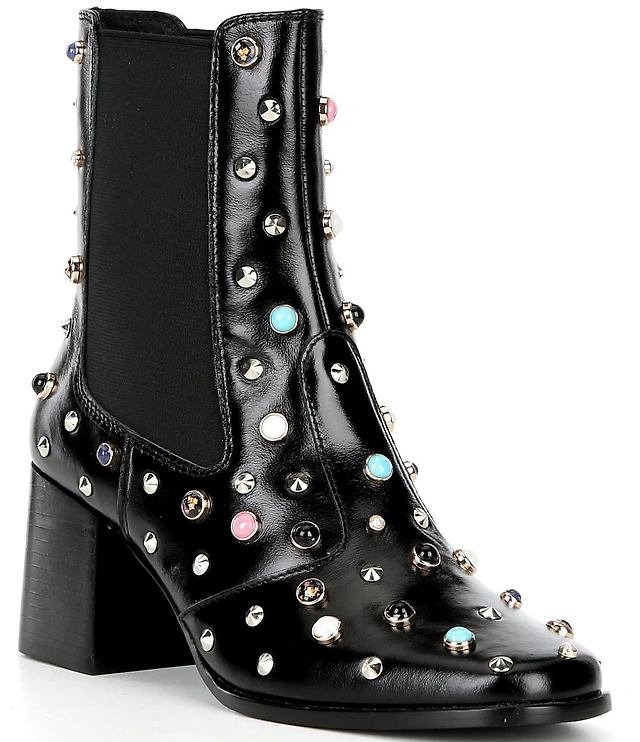 Cecelia New York Whistle Studded Leather Block Heel Booties