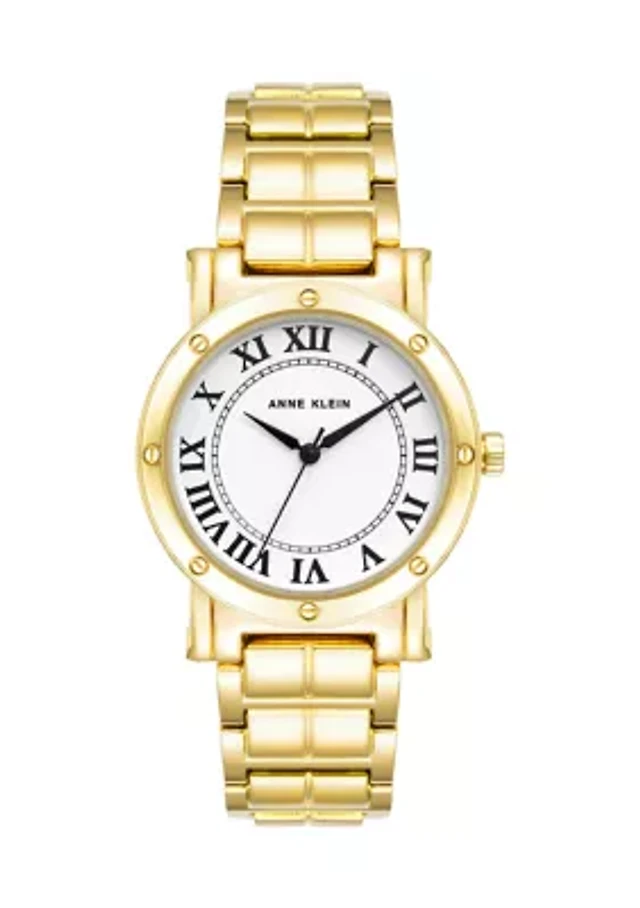 Women's 30 Millimeter Roman Numeral Gold-tone Alloy Bracelet Watch