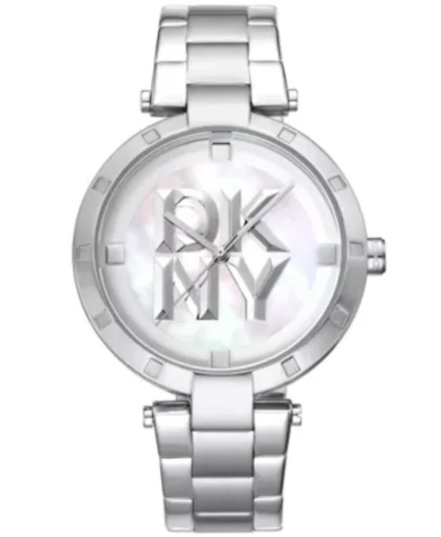 Women's Essential Logo White MOP Dial Stainless Steel Bracelet Watch
