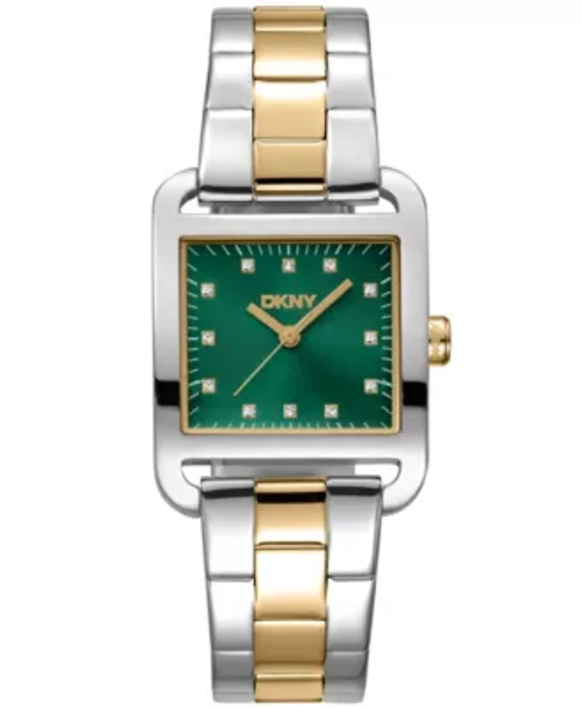 DKNY Women's Green Dial Crystal Bezel Gold-Tone Stainless Steel Bracelet Watch 30mm 50M