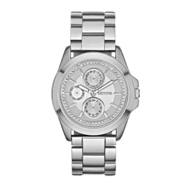 Womens Crystal-Accent Boyfriend Bracelet Watch