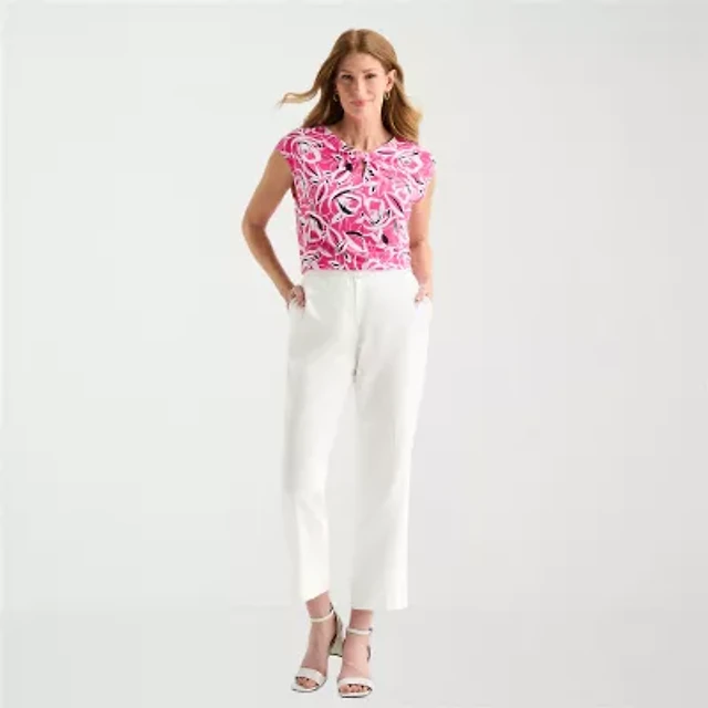 Anne Klein Pull On Stretch Front Pockets Straight Leg Trouser Pants