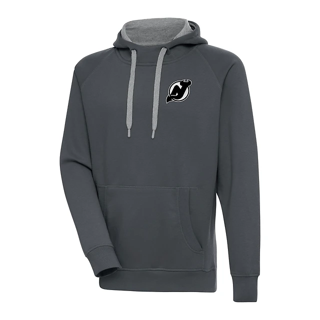 Men's Antigua Charcoal New Jersey Devils Metallic Logo Victory Pullover Hoodie