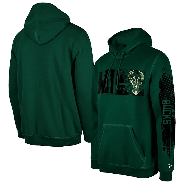 Men's New Era Milwaukee Bucks Hunter Green Tip-Off Collection Pullover Hoodie