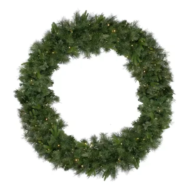 24" Pre-Lit Oregon Fir Artificial Christmas Wreath, Warm White LED Wide Angle Lights