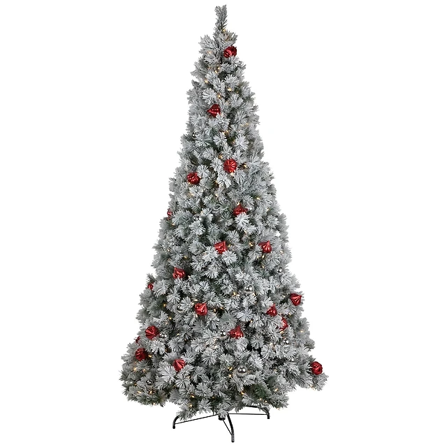 7.5ft. Pre-Lit Oakley Hills Snow Hinged Tree with Flocked Pinecones, Warm White LED Lights