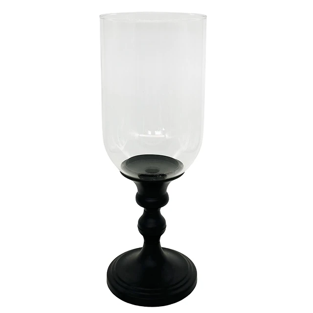 Transparent Glass Pillar Candle Holder with Wooden Base