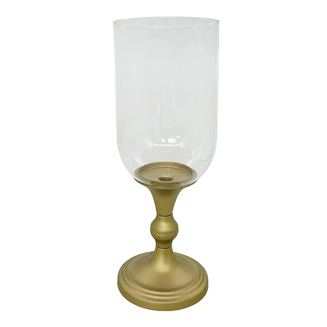 10" Transparent Glass Pillar Candle Holder with Wooden Base