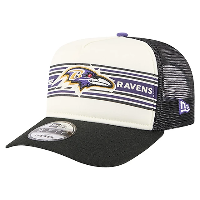 Men's New Era Cream/Royal Los Angeles Rams Team Stripe Trucker 9FORTY Snapback Hat
