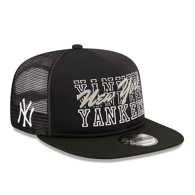 Men's New Era Black New York Yankees 9FORTY A-Frame Trucker Adjustable Hat
