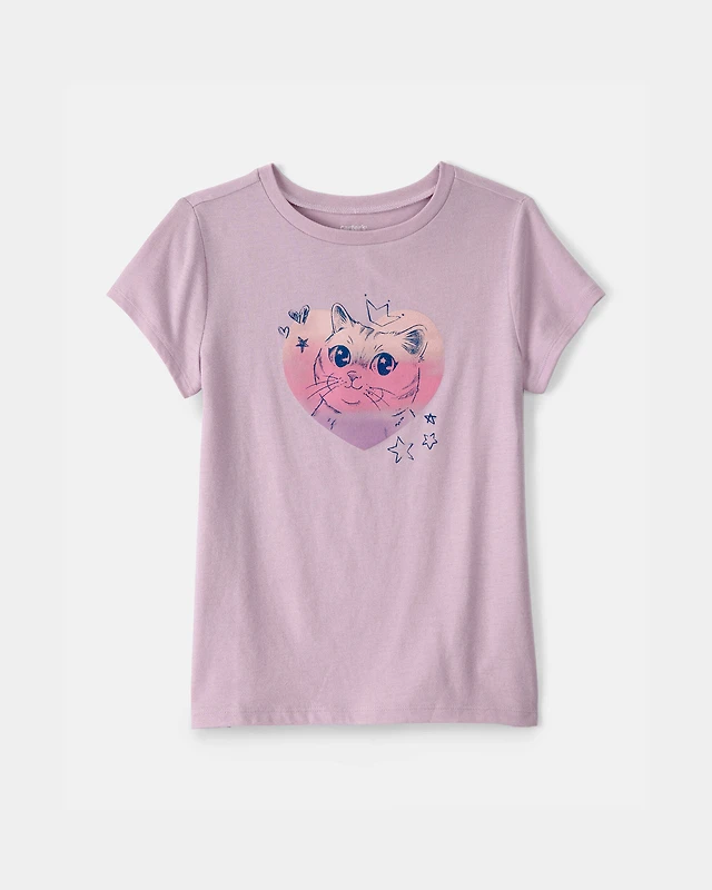 Girls Cat Heart Graphic Tee - Purple