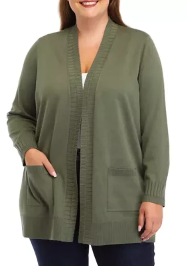 Plus Long Sleeve Cable Knit Cardigan