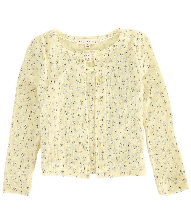 Copper Key Big Girls Ditsy Floral Print Pointelle Tank Top & Cardigan 2-Piece Set