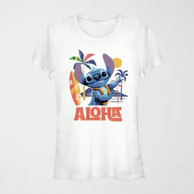 Lilo And Stitch The Movie Aloha Tee Womens Juniors Crew Neck Short Sleeve & Graphic T-Shirt