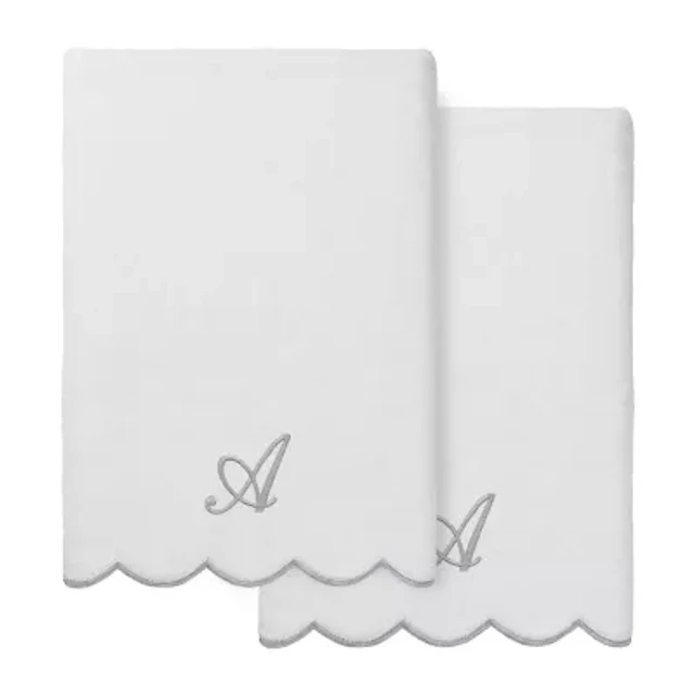 Linum Home Textiles Adornia Scallop Green Personalized 2-pc. Fingertip Towel