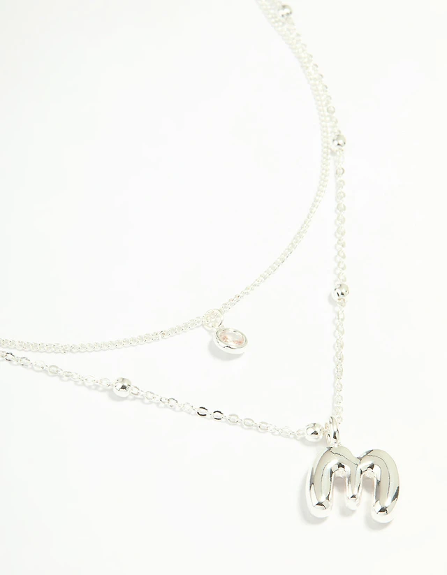 Silver Plated Cubic Zirconia & Bubble Letter L Layered Necklace