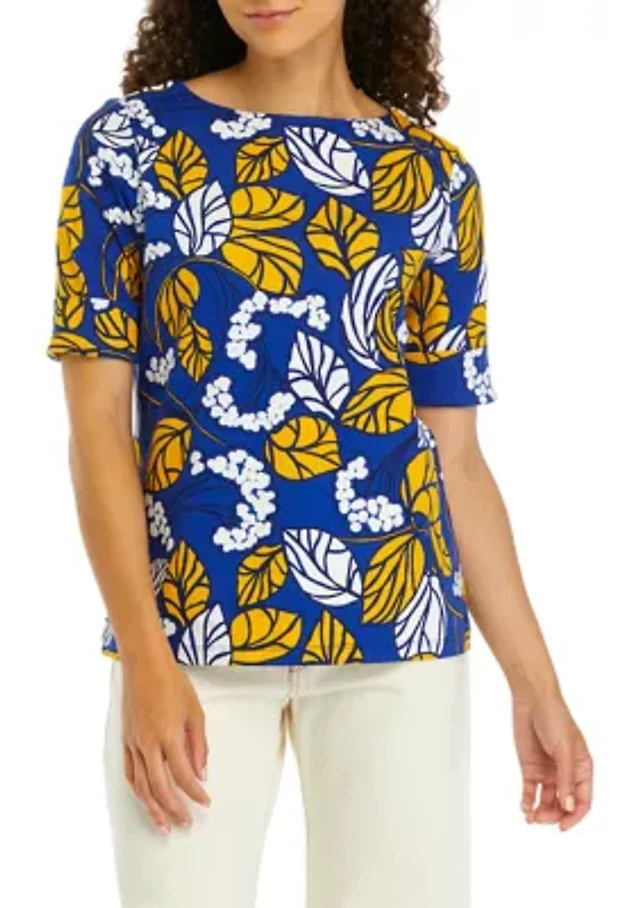Women's 3/4 Sleeve Printed Henley Top