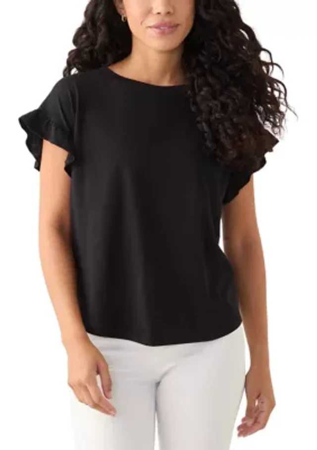 Petite Flutter Sleeve Ribbed T-Shirt