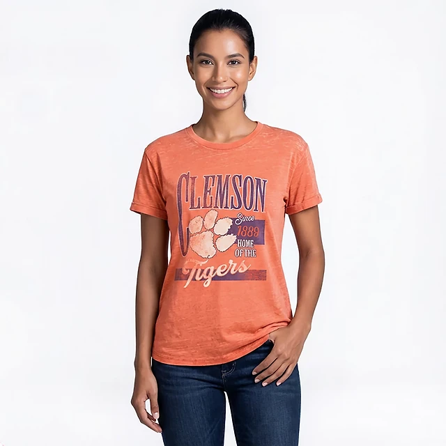 Pressbox Women's Clemson University Vintage Stephen Boyfriend Graphic T-shirt