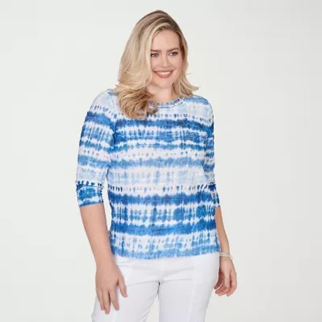 Alfred Dunner Womens U Neck 3/4 Sleeve T-Shirt