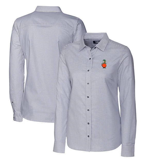 Women's Cutter & Buck Charcoal UCF Knights Oxford Stripe Stretch Long Sleeve Button-Up Shirt