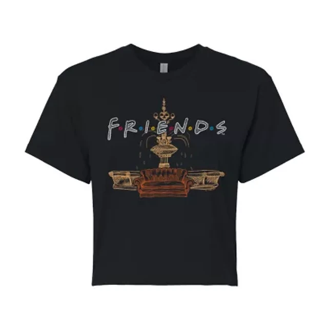Friends Fountain Cropped Tee Womens Juniors Crew Neck Short Sleeve Regular Fit Graphic T-Shirt