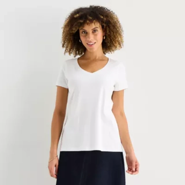 St. John's Bay Womens Easy-on + Easy-off V Neck Short Sleeve Adaptive T-Shirt