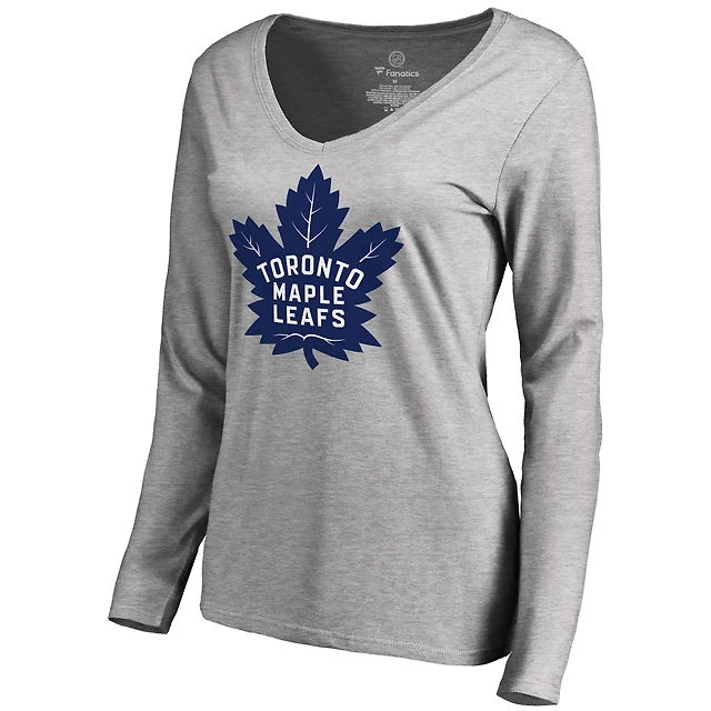 Women's Heathered Gray Toronto Maple Leafs New Primary Logo V-Neck Long Sleeve T-Shirt