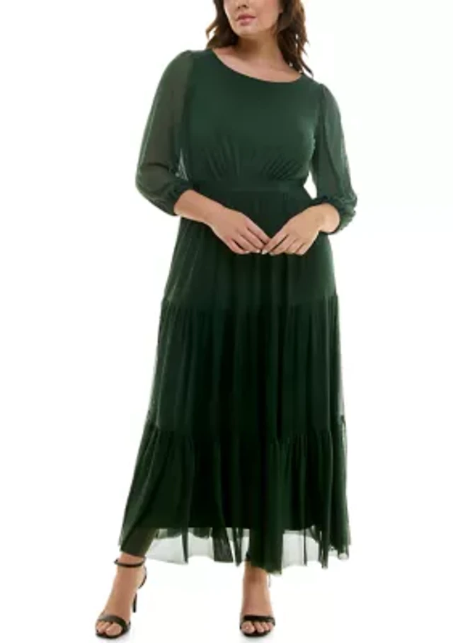 Plus Three-Quarter Sleeve Flounce Tiered Dress