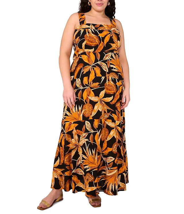Stevie by Steve Madden Floral Printed Sweetheart Neck Tie Shoulder Tiered Maxi Dress