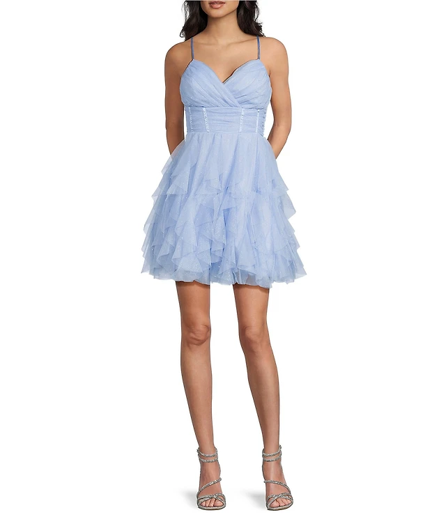Adalee Flutter Strap Ruffled Chiffon Formal Dress
