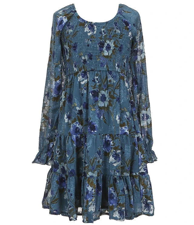 Ava & Yelly Big Girls 7-16 Ruffle Sleeve Floral Printed Chiffon Long Dress