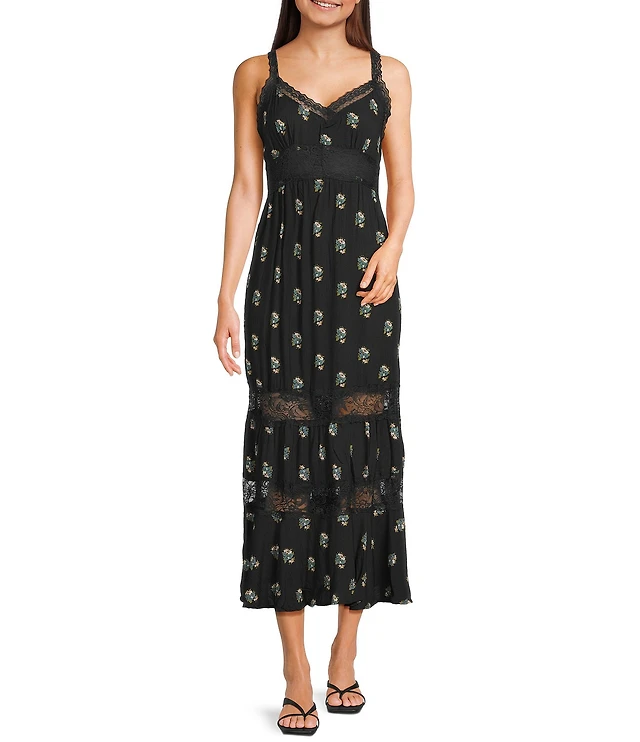 Next Up Spaghetti Strap Floral Print Tiered Skirt Dress
