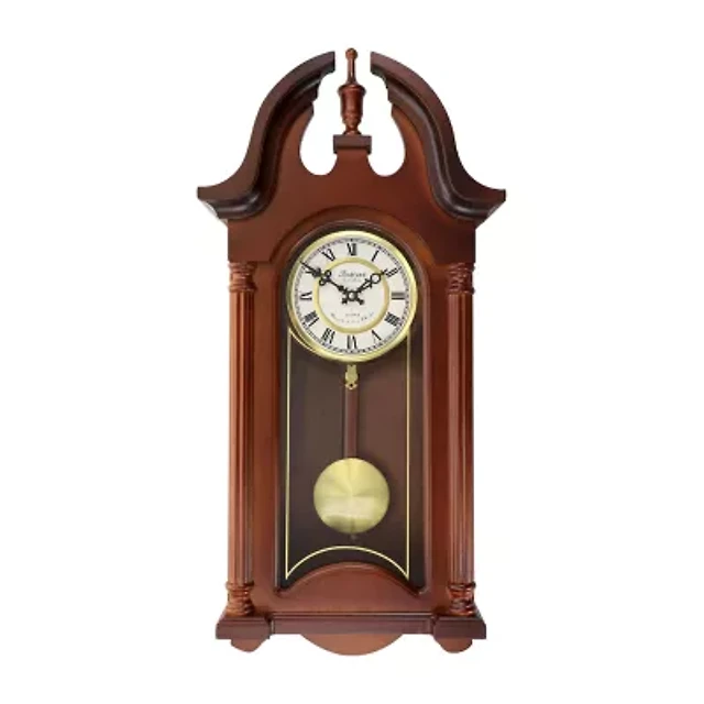 Bedford Clock Collection Chiming Pendulum Antique Cherry Oak Finish Wall Clock