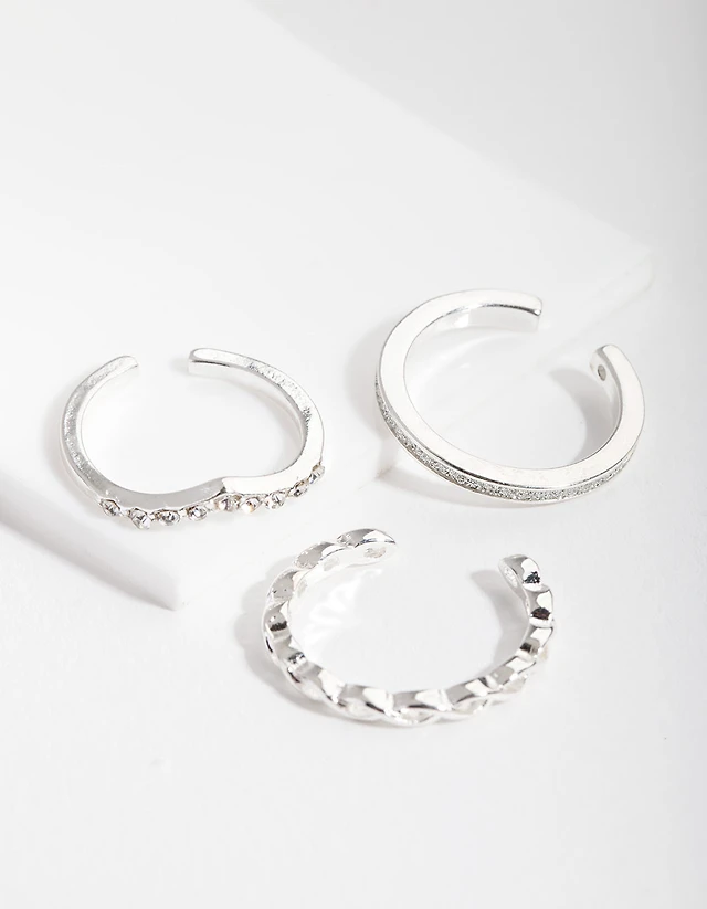 Rhodium Open Diamante Toe Ring Pack