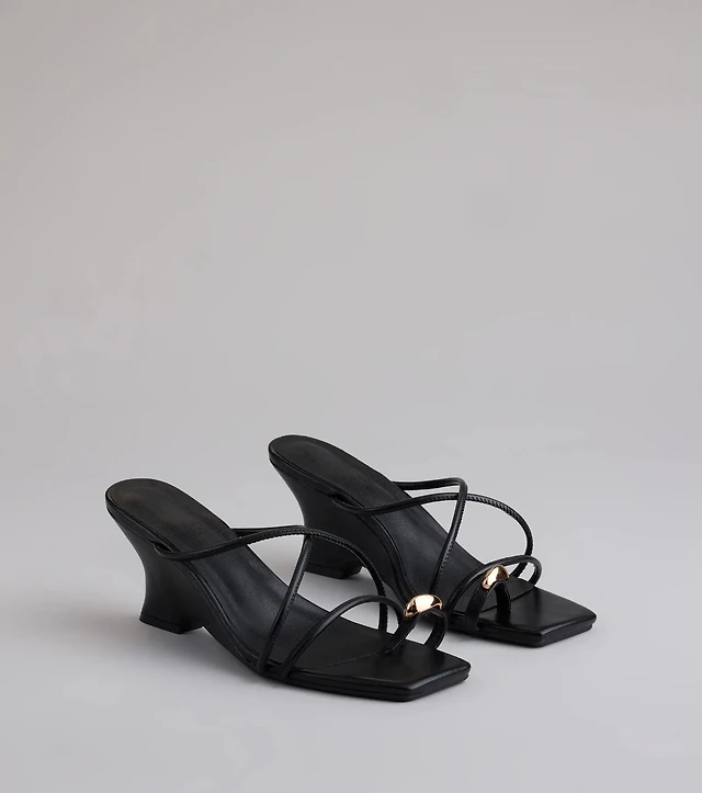 Refined And Classy Toe Ring Strappy Wedges