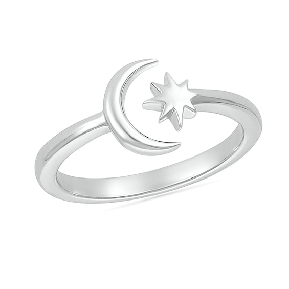 Solid Sterling Silver Moon and Star Toe/Midi Ring