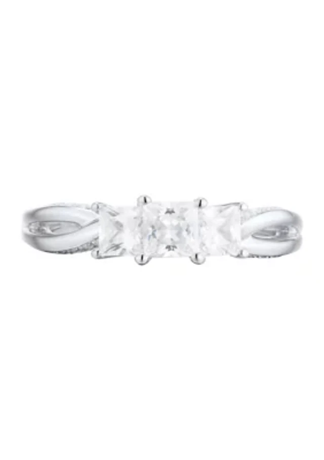 Cubic Zirconia Rectangle Ring in Sterling Silver - Size 10