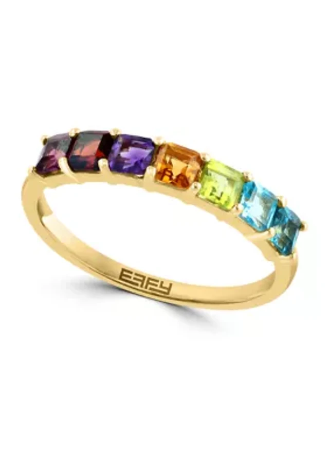 Multi-Gemstone and Lab-Created White Sapphire Cross-Over Ring in Sterling Silver