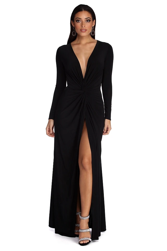 Vince Camuto Foil Knit Knotted One-Shoulder Gown