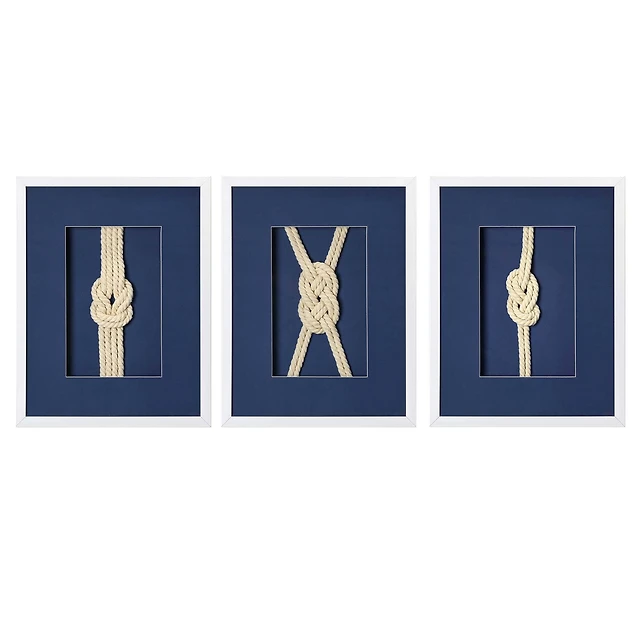 American Art Decor Naut Shore Framed Nautical Knots Vertical Wall Decor Set - 53" x 13"