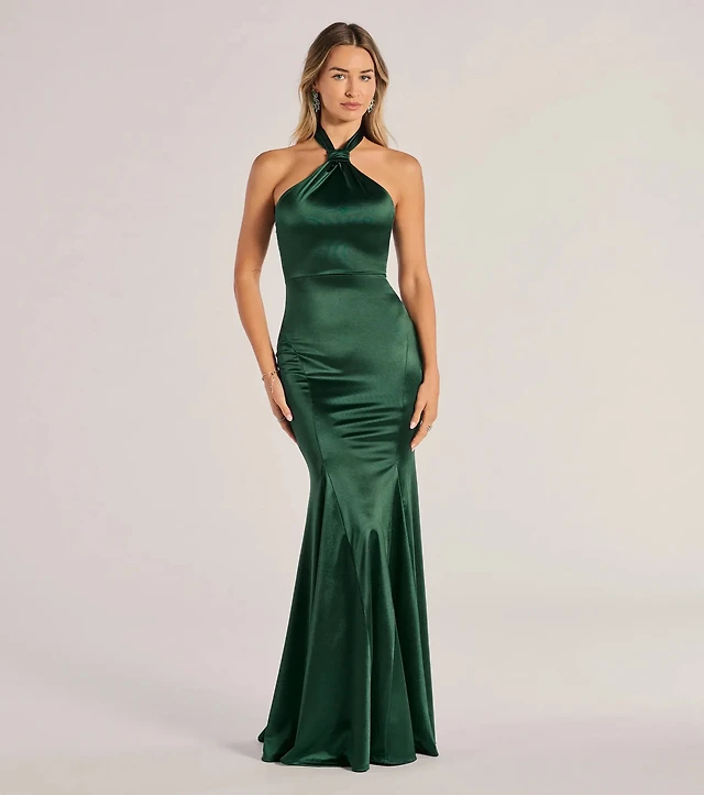 Hallie Satin Sleeveless Halter Mermaid Dress