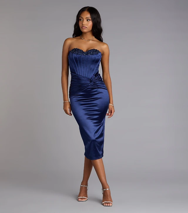 Christy Satin Lace-Up Bustier Midi Formal Dress