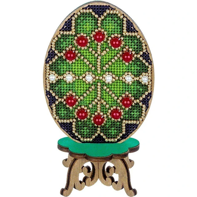Wonderland Crafts Green Gnome with Lantern Bead Embroidery on Wood Kit