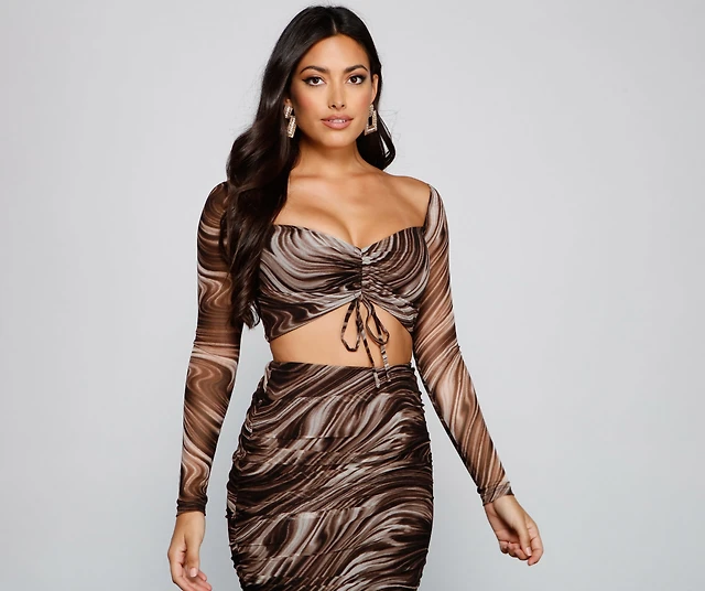 Trendy Adventure Strapless Paisley Satin Crop Top